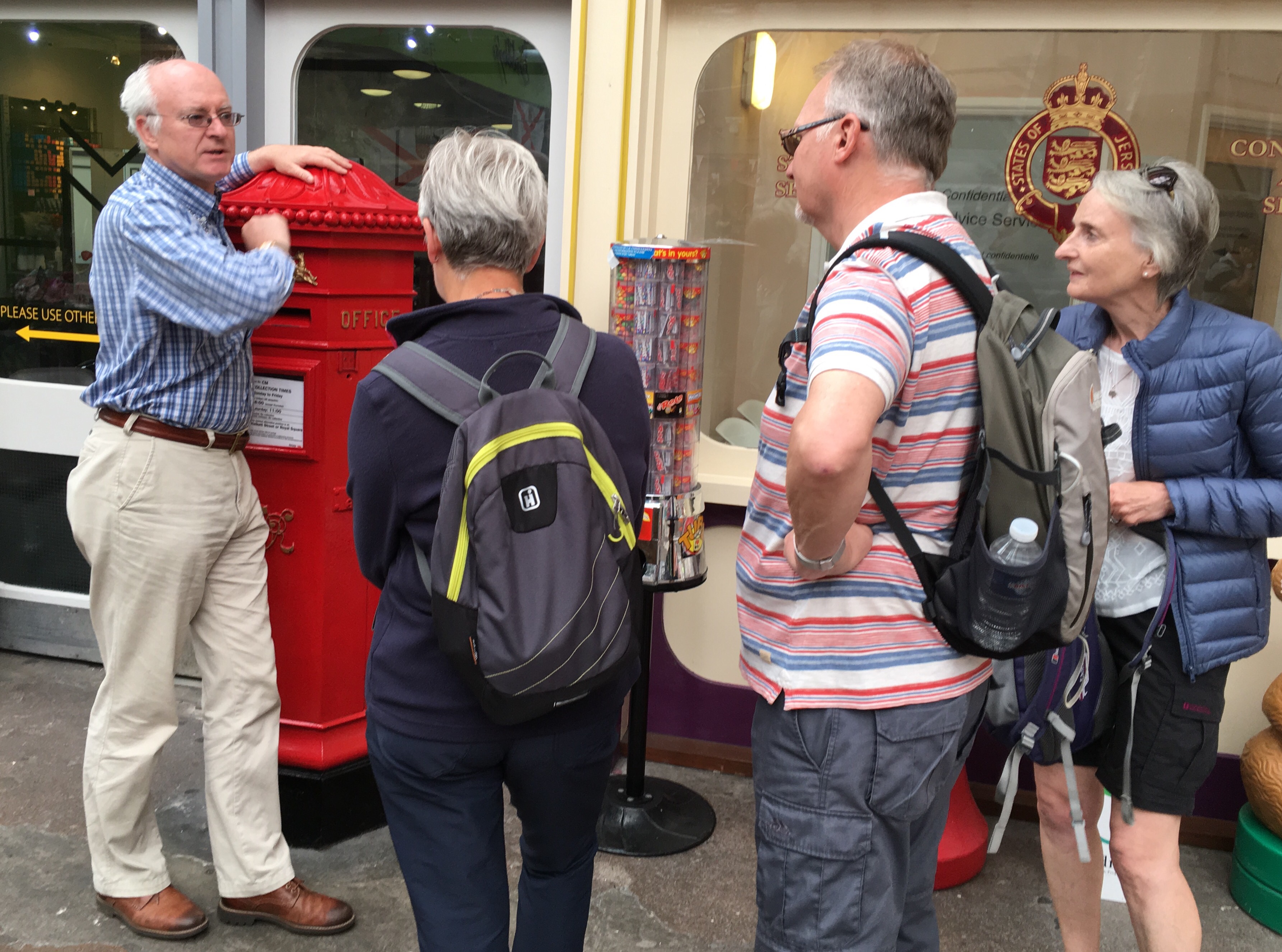 Back to that later. We took the bus to St Helier and met Ned (Edward Malet de Carteret) for our tour of the town. Ned’s family have been on the island for 800 years plus and have played influential roles through the centuries. We learned about the history of the Island becoming ‘English’ and, interestingly, French was the main language until 1900s. There was some reference to how the islanders suffered during the Occupation but award for ‘Story of the Day’ goes to the tale of Anthony Trollope implementing Post Boxes which were first trialled in Jersey before being rolled out across the UK.