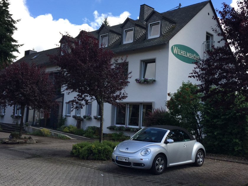 Six hours after leaving Etten-Leur, we reached Hotel Wilhelmshoehe where we’ll stay for the next 4 nights. It’s been 6 or 7 years since we were last here. On that occasion John and Matthew took our Honda Civic for several laps of the Nordschliefe while Kim drank tea at the hotel and tried not to worry that they wouldn’t come back alive!