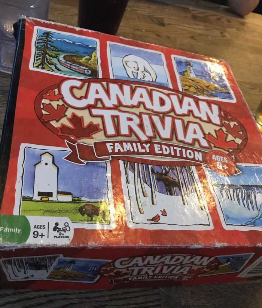 The restaurant had stacks of games and we thought we’d improve our knowledge of Canada with Canadian Trivial Pursuit.