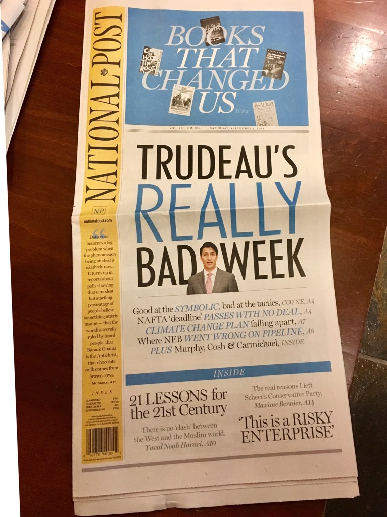 Canadian newspapers are a far more sensible shape than our UK papers. Nice and light to hold, without sagging or falling apart.