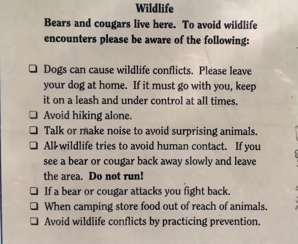 The Juan de Fuca National Park is Old Growth Rain Forest and signs warned us we were back in bear and cougar country.