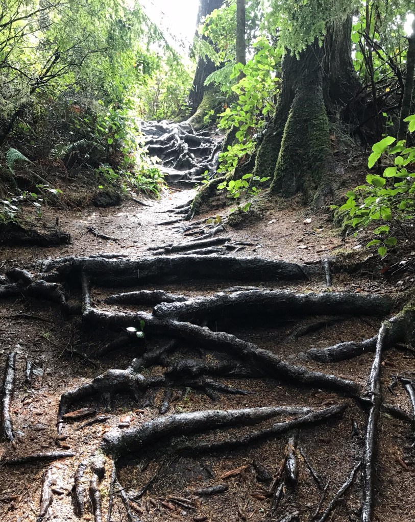This felt a lot scarier than when we’d been in the Rockies. The trail was very quiet, it was raining and you could feel the age of the forest around you……and it kept making strange noises.