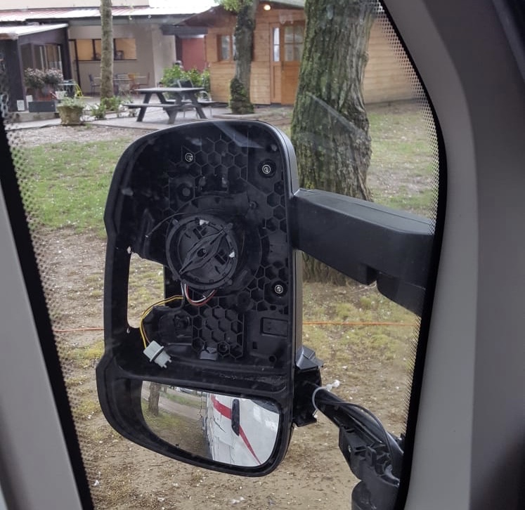 A lorry, on the wrong side of the road, took out their wing mirror. Jacky had the fright of her life when it went bang! We are waiting for advice from JustGo to see if it needs repairing before we continue, in the meantime, we’re parked under the trees at Camping Listro.