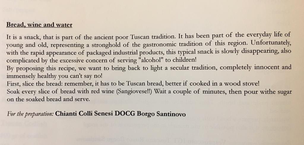 There is a vineyard and farm associated with our hotel that showcases Tuscan food and wine. We were a little concerned by one local recipe.