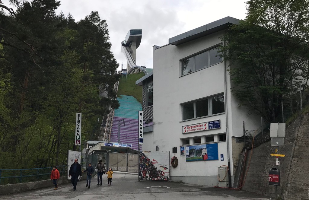 We bought our tickets and took the small funicular up to the viewing platform at the very top where the ski jumpers make their descent.
