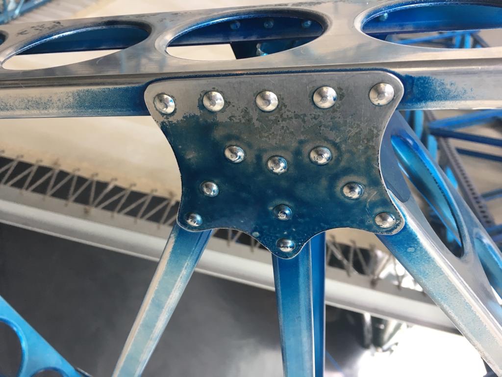 Sections of omega shaped aluminium were still being riveted together by hand until the 1990’s although the latest airships now use carbon fibre.