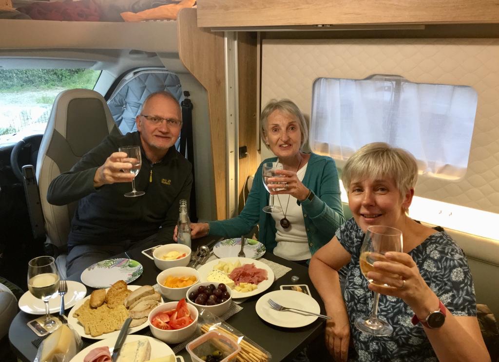 The Bodensee area where we are stopping is well known for fine wines and any spare piece of ground no matter how small is covered in well tended vines. John decided to visit the Hagnauer vineyard on the way back. The rest of us didn’t appreciate it was a free wine tasting and headed straight back to the campsite for a cuppa!