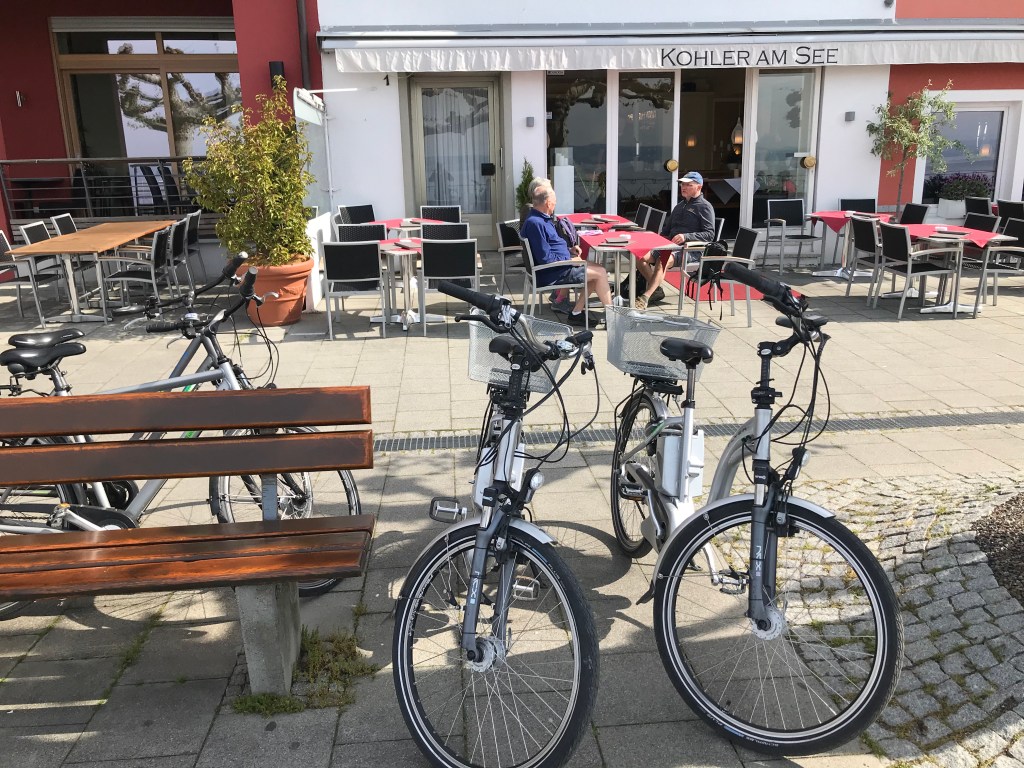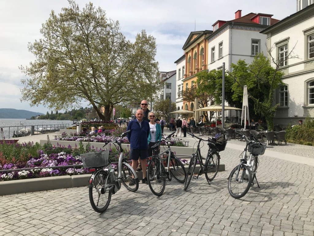 Yesterday’s sunshine continued so we stayed on at Hagnau and decided bike hire was a good idea for travelling the 7 miles to Pfahlbauten (Pile Dwellings Museum) at Unteruhldingen.