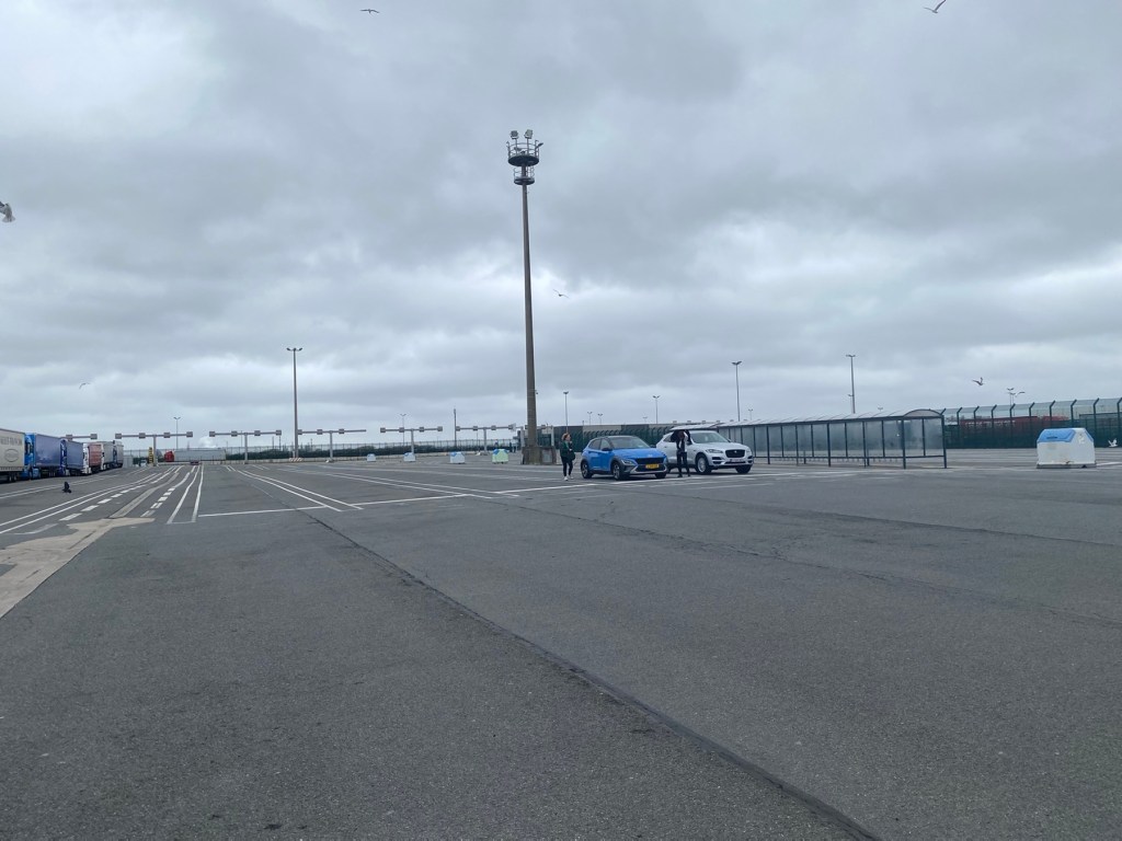 We were held outside the Port at Dover for over an hour, waiting for a little tug to assist us into port. It was very dramatic with harbour walls and berthed P&O ferries all within hitting distance. We admired the skill of the tug captain, a tiny little boat dwarfed by the ferry. It was all very dramatic in a calm, understated way. The only sign the crew were preparing for a potential accident was seeing them all calmly lined up watching what was happening outside, ready to take action if needed. It really brought home the impact of P&O’s decision to use agency staff.