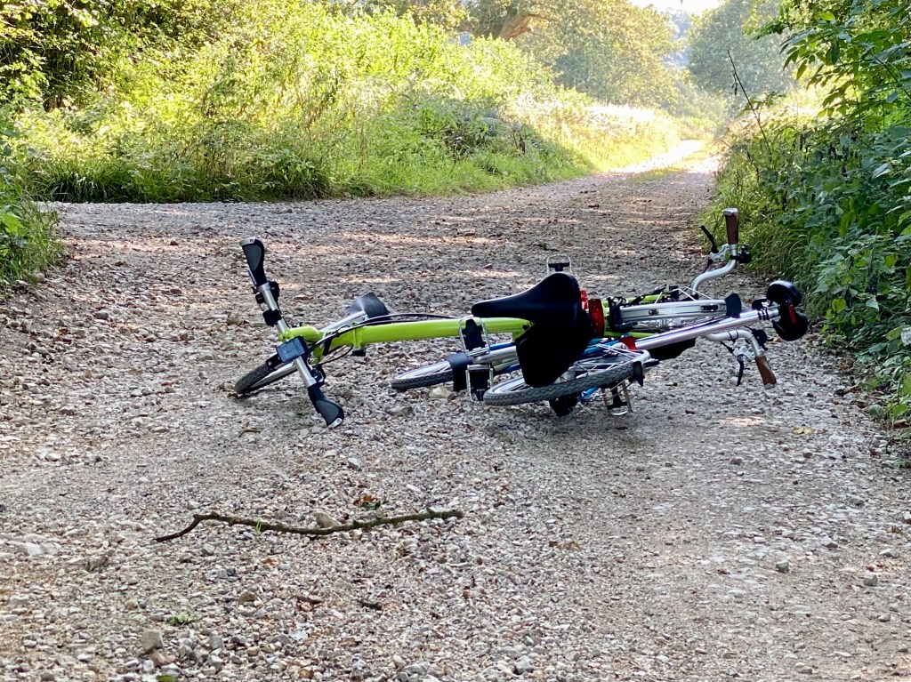 Amongst many questions we are asked about our bikes is ‘what are they like to ride on such small wheels?’ They are in most cases, absolutely fine apart from when riding over sand and gravel. Today’s journey back to Godshill involved a number of loose and sometimes deep gravel bridleways and we struggled. Quite why Google Maps considers them suitable for cycling will forever remain a mystery. We were tempted to part exchange them for a couple of ebike’s!