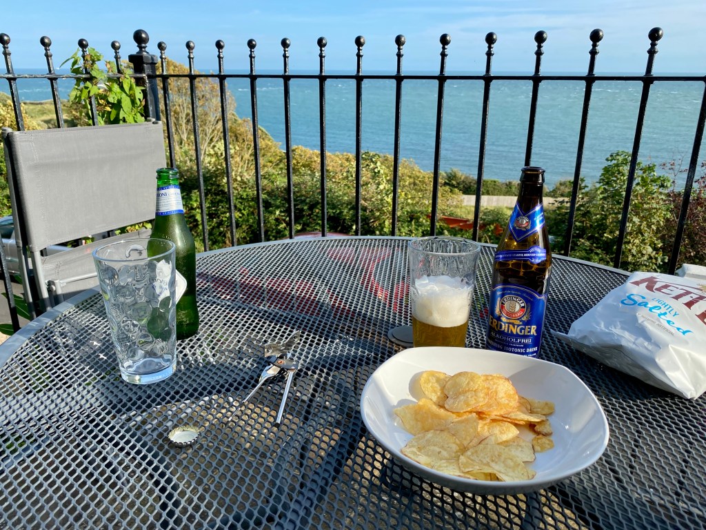 Tired and sore, we made it back to Ventnor. Luckily the late afternoon sun was still on the terrace so we toasted the success of a cider and cheese fair with alcohol free beer. Sadly it was all we had and neither of us could face a 15 minute walk in to town to buy something more robust.