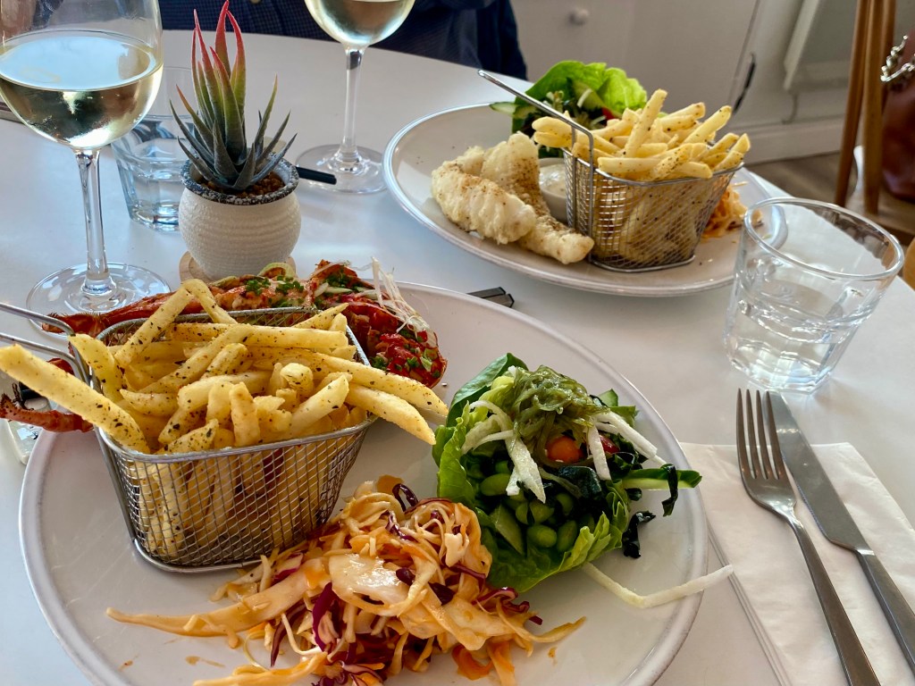 This evening, we had managed to get a reservation at The Smoking Lobster in Ventnor, the downside was that we had to be there at 5:15. It was worth the early meal. The food was delicious, staff and service was friendly and relaxed. We’ll only bore you with one photo of food and tell you that the cheeseboard included Tunworth.