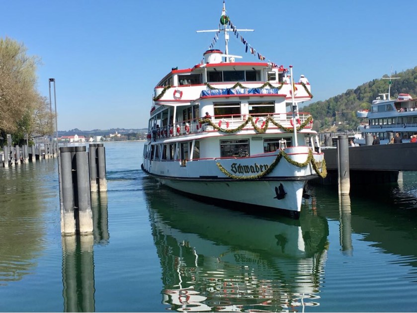 The harbour is guarded by the Bavarian Lion and the ‘new’ Lighthouse. The harbour used to be owned by Deutsche Bahn before being sold to the town of Konstanz in Baden-Wurttemberg. It was only returned to Bavaria in 2010, after a long dispute. Can you imagine a German row over a harbour?